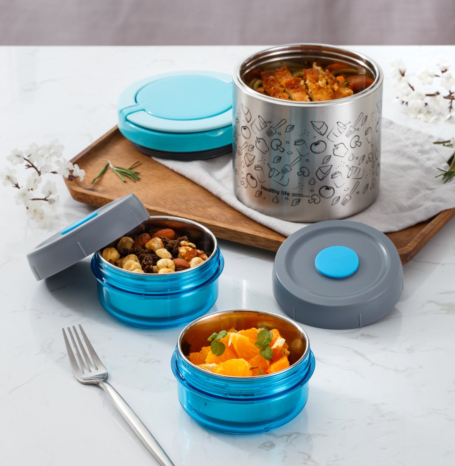 A COMPLETE SET OF LUNCH BOXES - including a vacuum insulated 22oz lunch box that can keep food warm for 4-6 hours, 2 BPA-free food containers, 7oz each and a lunch bag.